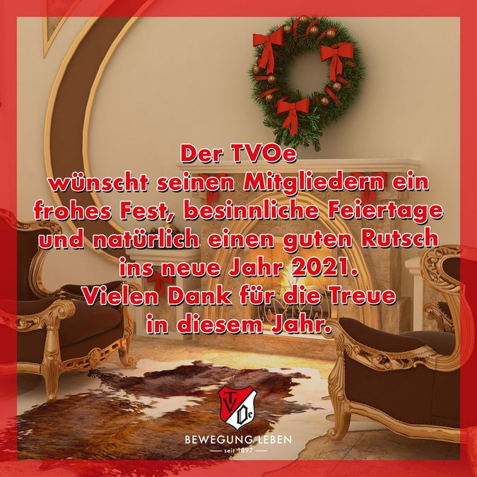 Der TVOe wünscht seinen Mitgliedern ein frohes Fest, besinnliche Feiertage und natürlich einen guten Rutsch ins neue Jahr 2021.