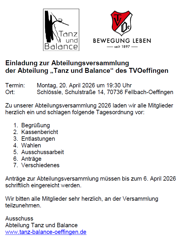 Einladung zur Abteilungsversammlung "Tanz und Balance" am 20. April 2026